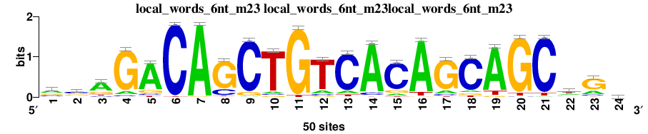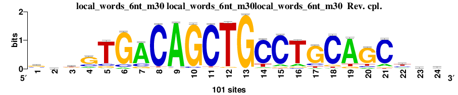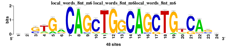 Command:  peak-motifs  -v 5 -title Myogeni_Rep1_motifs50 -i C2C12-diff-60h-myogenin-10158.rep1.fa -markov auto -disco oligos,dyads,positions,local_words -nmotifs 50 -minol 6 -maxol 8 -no_merge_lengths -2str -origin center -motif_db jaspar_core_nonredundant_vertebrates tf $RSAT/public_html/motif_databases/JASPAR/Jaspar_2020/nonredundant/JASPAR2020_CORE_vertebrates_non-redundant_pfms.tf -scan_markov 1 -source galaxy -task purge,seqlen,composition,disco,merge_motifs,split_motifs,motifs_vs_motifs,timelog,archive,synthesis,small_summary,motifs_vs_db,scan -prefix peak-motifs -noov -img_format png -outdir Myogenin_Rep1_motifs50